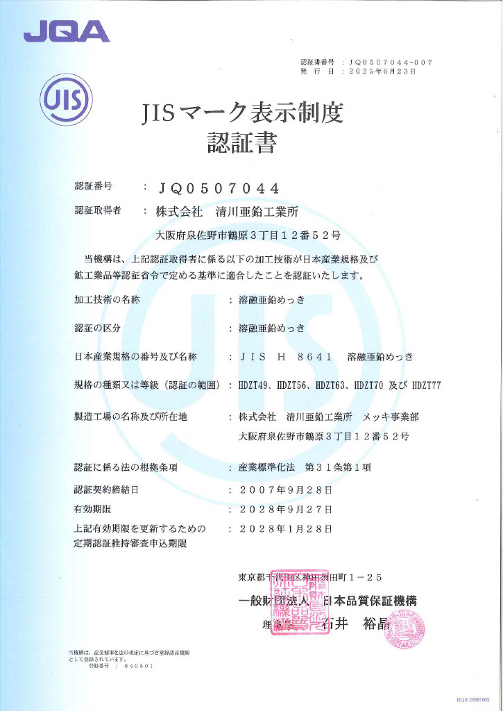 亜鉛メッキ槽 *浸漬管式セラミック炉 (2,500L x 1,500W x 1,500D) |